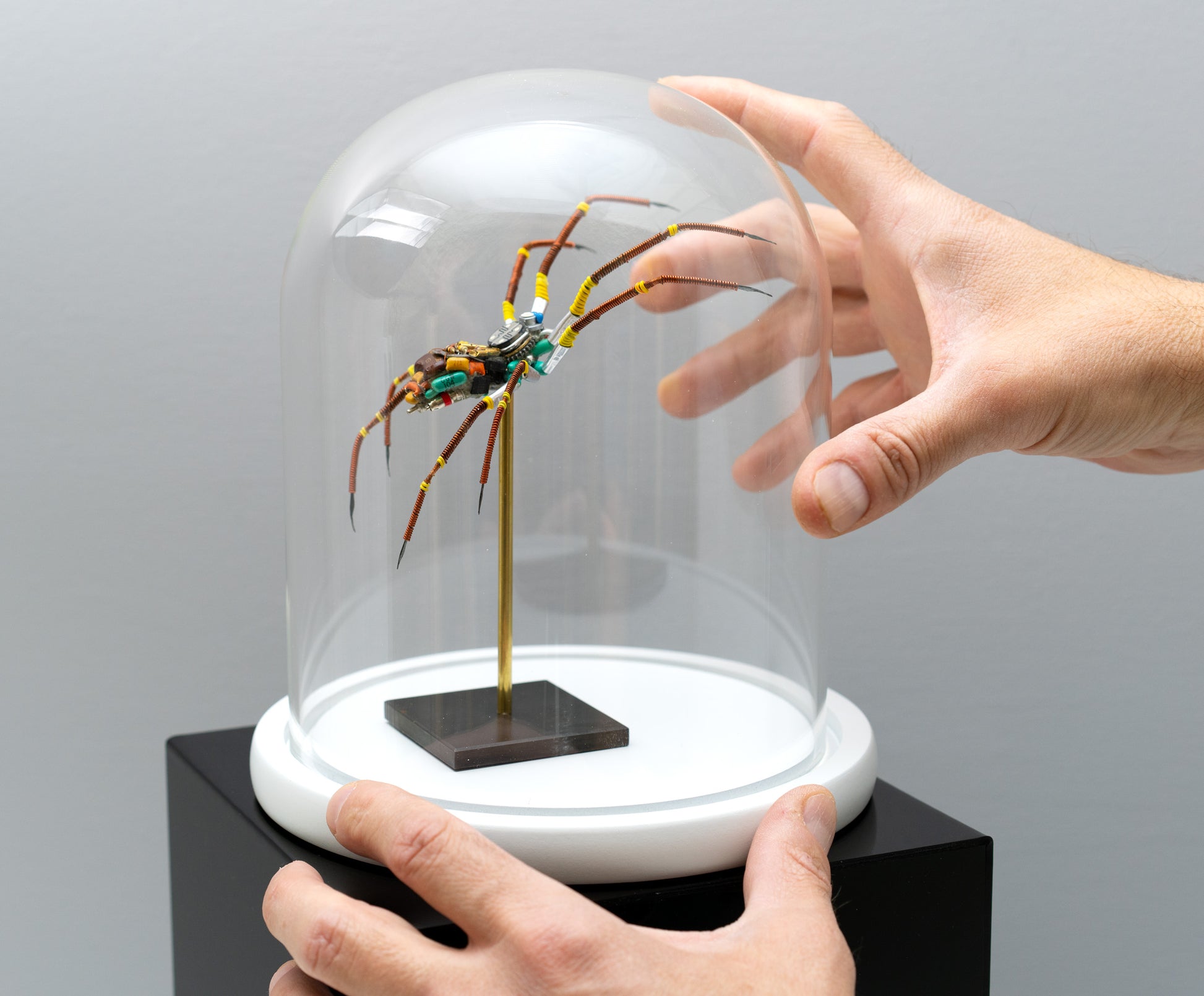 - BE CAREFUL!! When attaching the creature to the magnets in the base — resist the magnets from snapping the creature too hard to the base! There are magnets in the white base of the dome. These are very strong and hold the creature's metal base in place. When attaching the metal base of this creature to the magnets, it may yank the creature out of your hands and stick to the magnets. This force could damage the specimen.