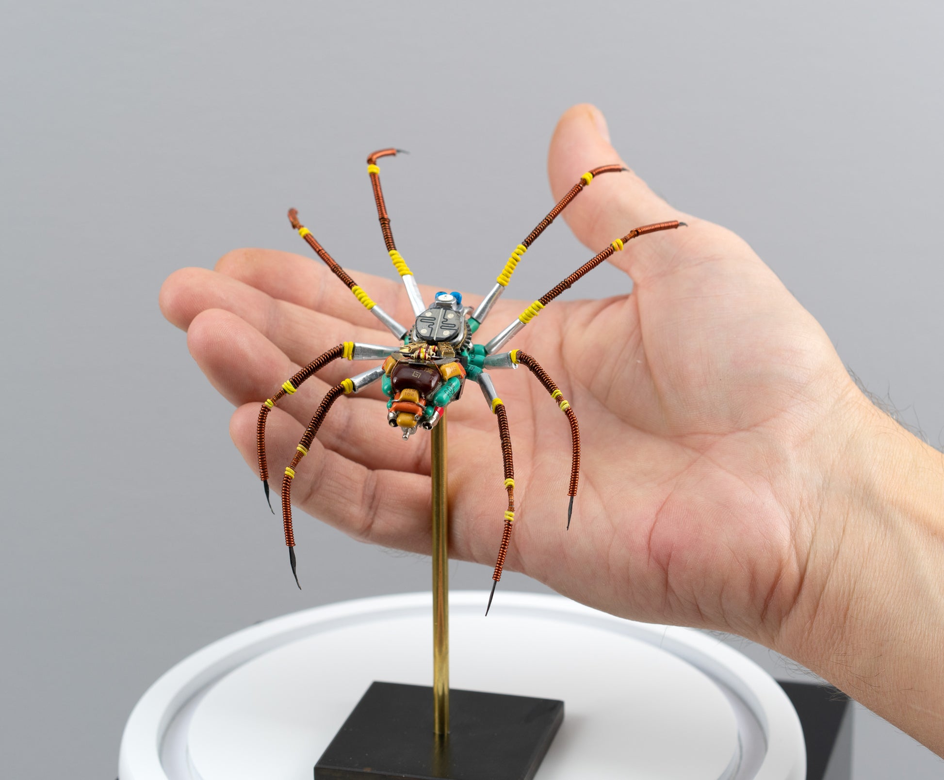 All of the spider assemblages I created this year are directly influenced by the massive amount of Joro Spiders here in Northern Georgia. I have a minor case (if that exists) of arachnophobia, enough that this provided a chill a few times while building.