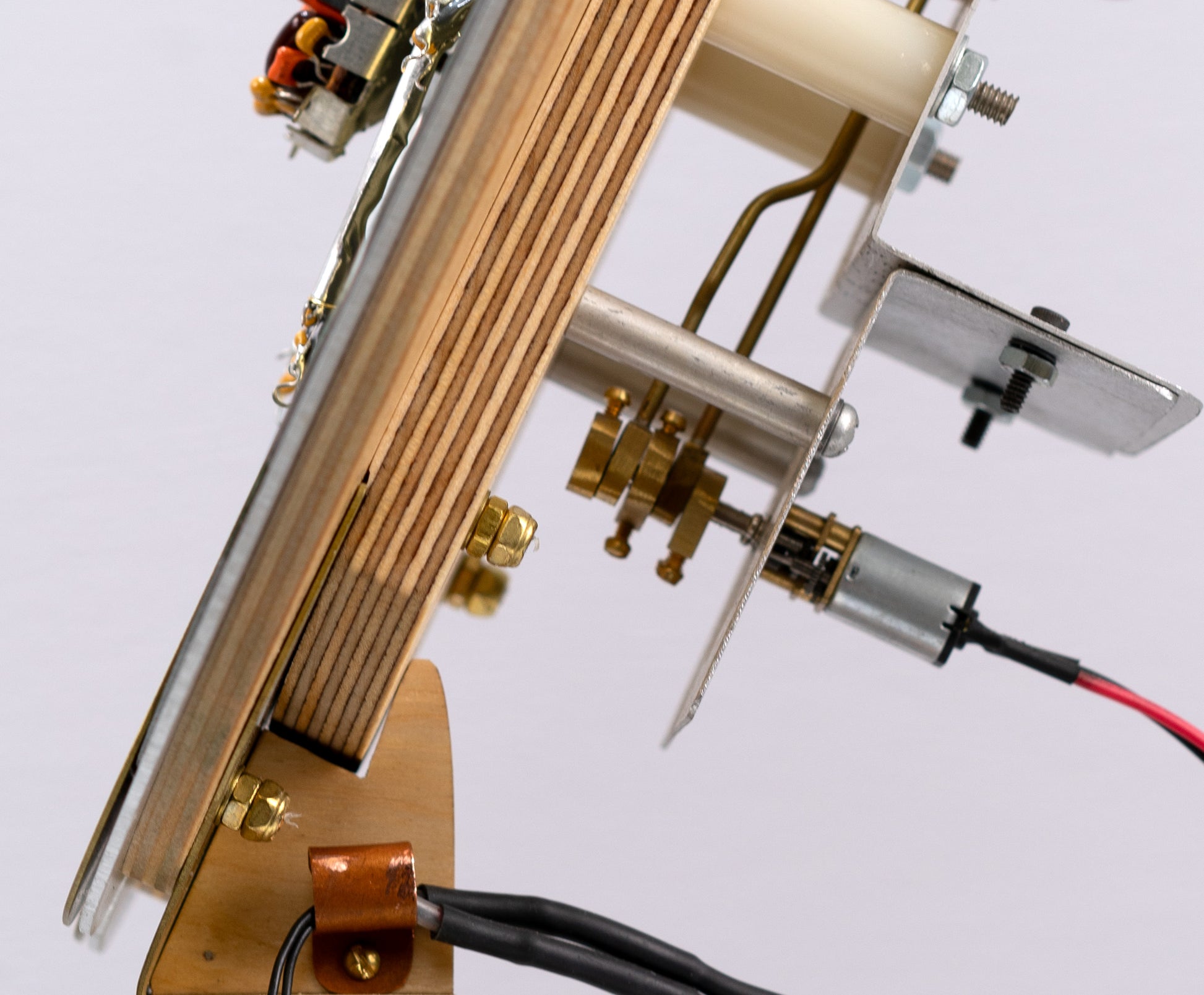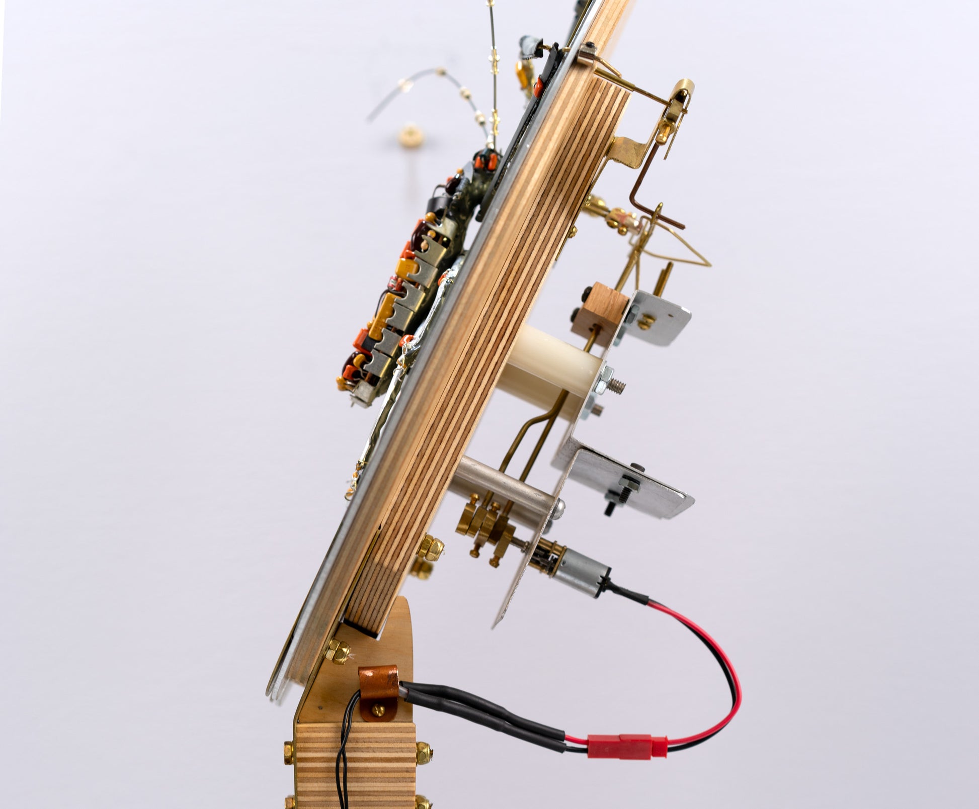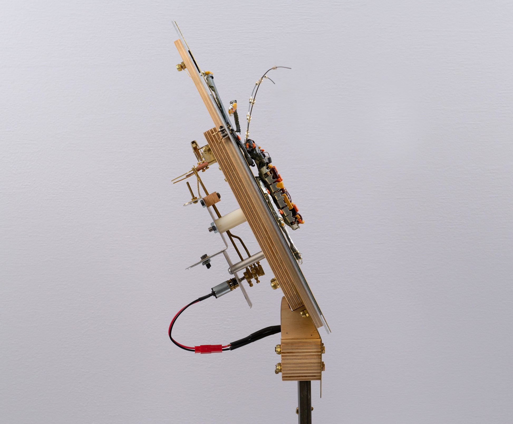 Found Objects, Brass, Steel, Walnut, Plywood, Hardware, Motor, Switch, Wire, Battery Holder, Hardware