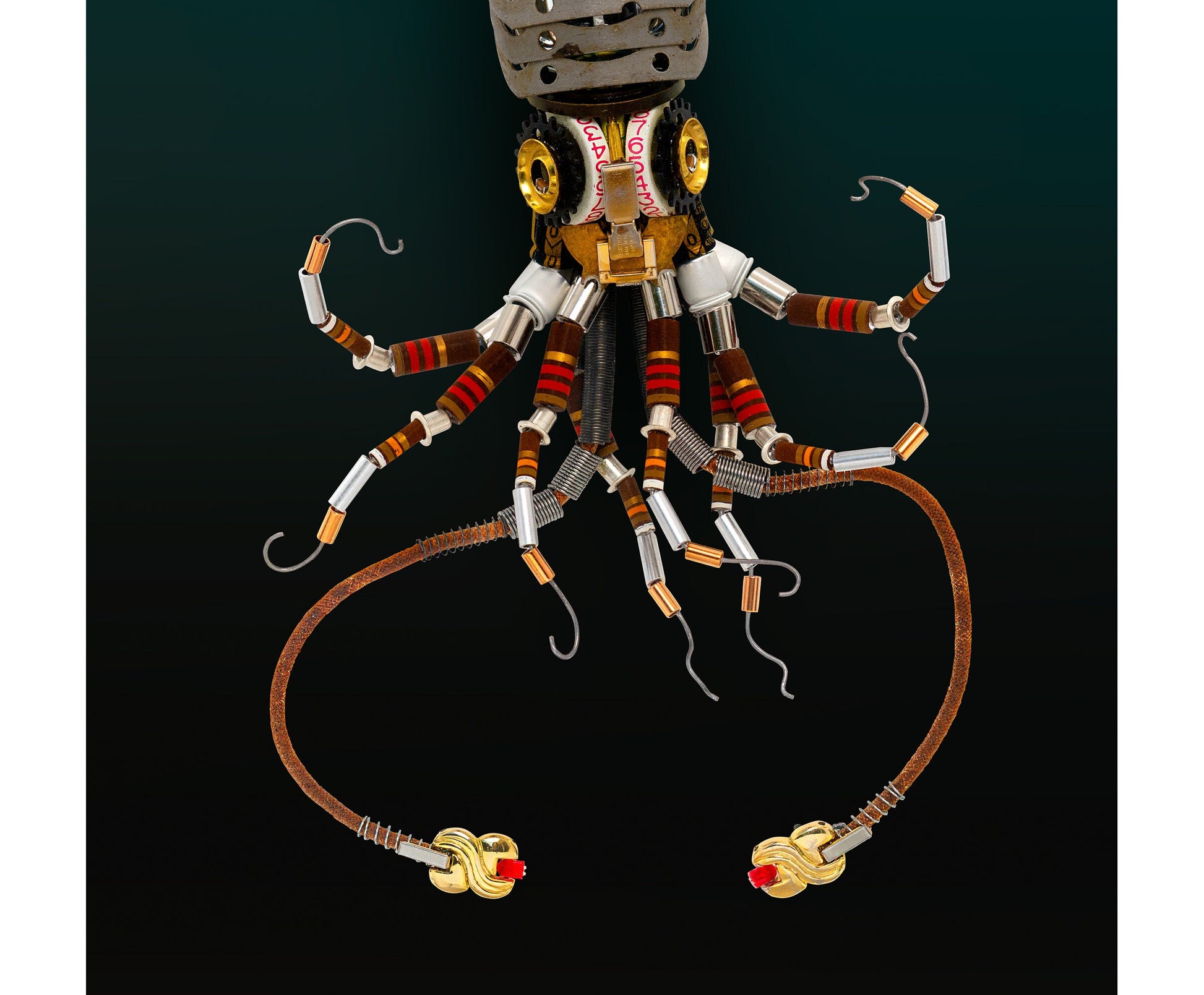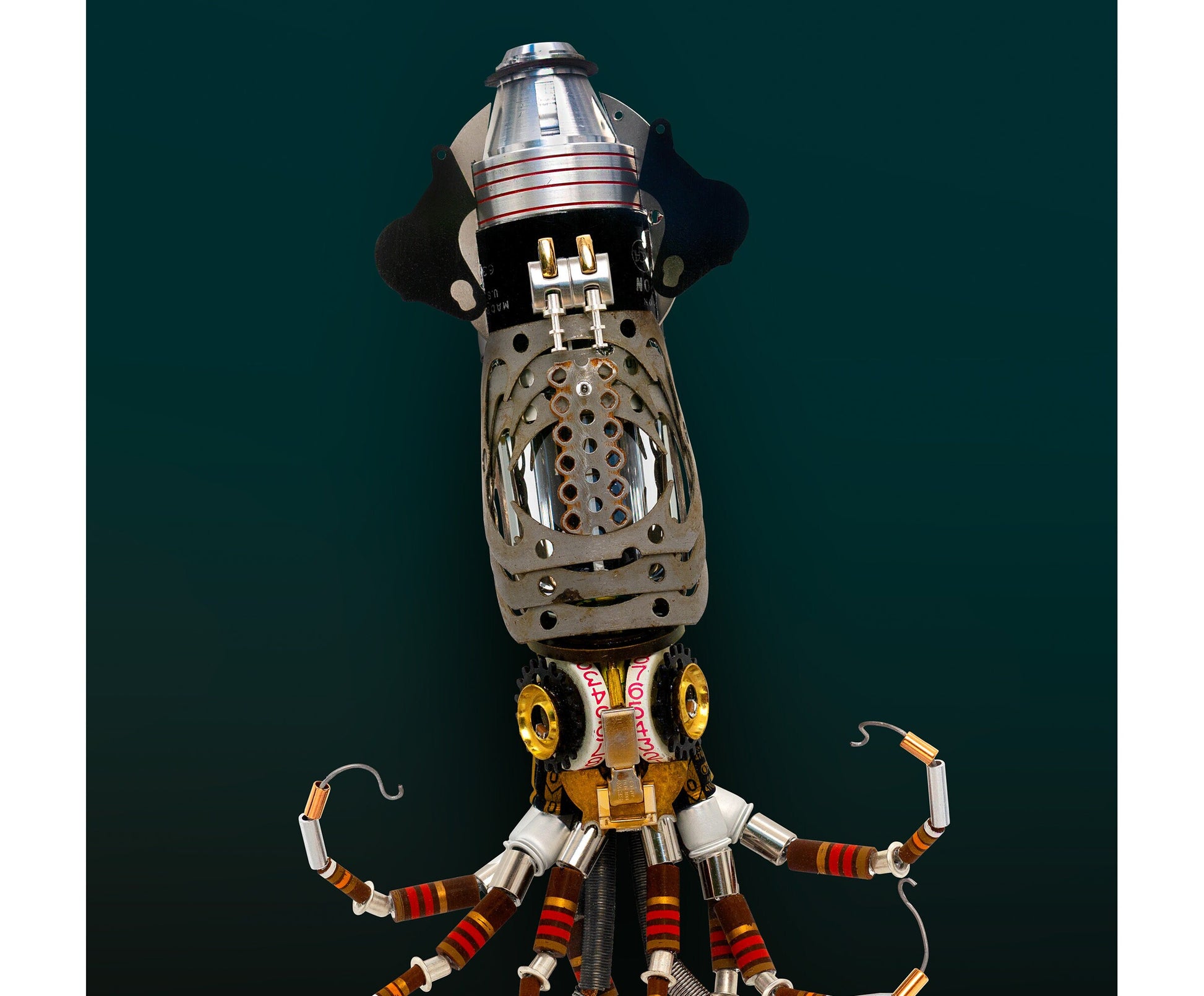- This is a photograph of an assemblage sculpture I have created out of found objects, electronics, camera parts and transformer wire.