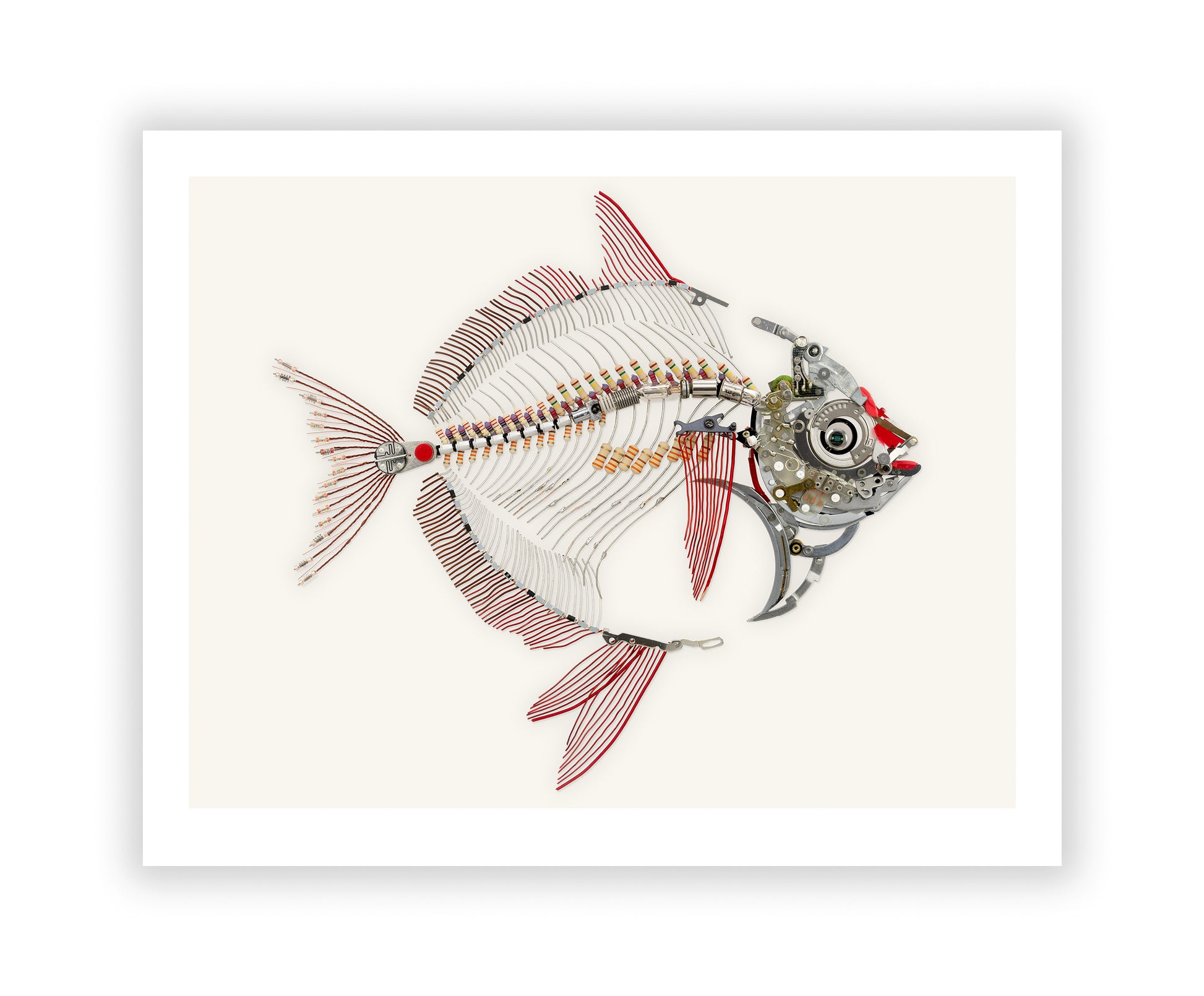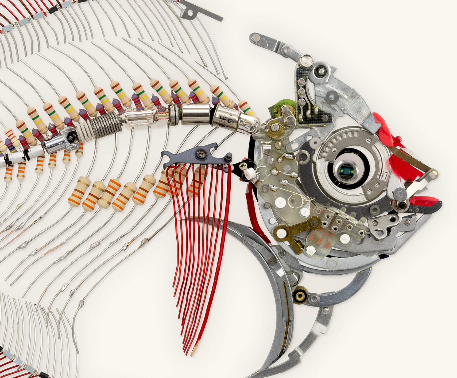 - This is a photograph of an assemblage sculpture I have created out of found objects, electronics, camera parts and transformer wire.
