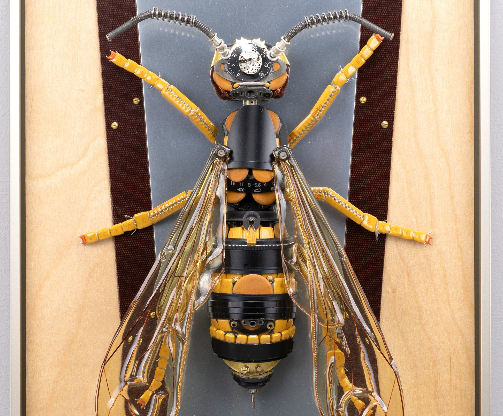 I'm finally adding this Yellowjacket to my shop. This piece is not cast in resin. The wasp is assembled using various fasteners, solder, and adhesives.